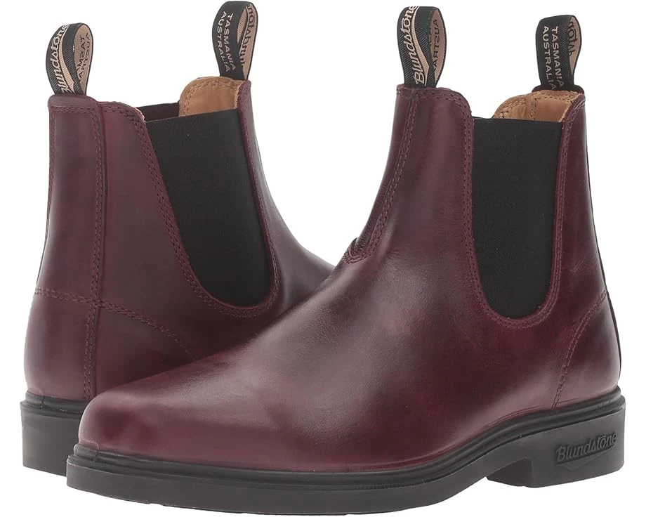 has a streamlined, sophisticated look that provides excellent comfort and support for all-day wear.SKU: #8731193Premium leather upper.Blundstone recommends ordering a half size up for a Wide fit.Square toe dress boot. Sturdy front and back pull-on tabs.Elastic gore side panels retains its shape.Smooth leather lining. Removable footbed with PORON® XRD™ technology in the heel strike zone is cushioned for superior shock absorption.Shock Protection System (SPS) disperses shock at the heel strike and reduces skeletal stress on the feet, knees, and vertebrae. It also includes a large insert of PORON® XRD™, the world’s most advanced microcellular shock-absorbing protection for underfoot comfort.TPU midsole provides supportive comfort.Defined heel for both style and stability. Thermo urethane (TPU) gum outsole is highly resistant to hydrolysis and is slip resistant to oil, acid, and organic fat. Imported.Product measurements were taken using size AU 10 (US Men’s 11), width Medium. Please note that measurements may vary by size.Measurements: