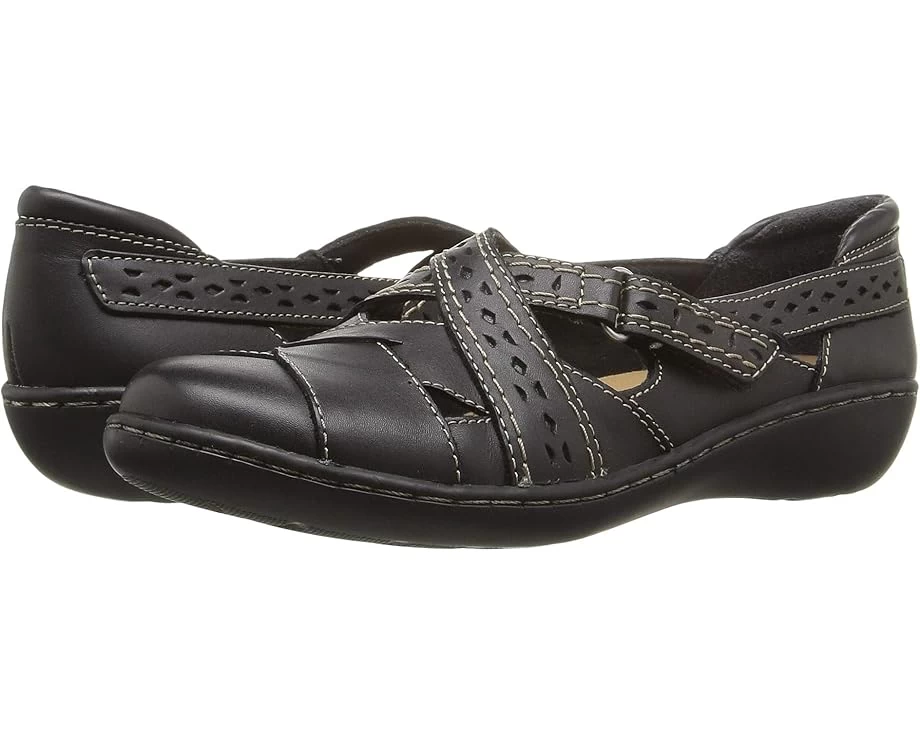 The Ashland Spin Q is part of the Clarks® Bendables Collection.SKU: #8717159Put your own spin on go-anywhere comfort and style in the Clarks® Ashland Spin Q.Premium leather upper with contrast stitching detail.Crisscross straps with a hook-and-loop closure.Soft synthetic lining ensures an abrasion-free environment for all-day wear.OrthoLite® footbed massages the foot with each and every step.TPR outsole delivers long-lasting durability on a variety of surfaces.Bendables™ construction provides flexible comfort.Imported.Product measurements were taken using size 8.5, width B – Medium. Please note that measurements may vary by size.Measurements: