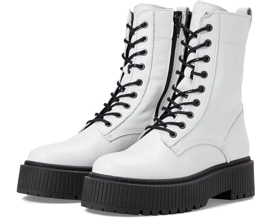 Don an iconic look in the smooth and shiny Eric Michael® Sage ankle-length booties stationed on platform heels.SKU: #9795497Smooth leather upper.Soft textile lining and insole.Zippered side closure and lace-up front.Ankle-length silhouette.Pull tabs for easy on and off.Round toe construction.Corrugated midsole.Platform heels.Synthetic outsole.Made in Portugal.Product measurements were taken using size EU 39 (US Women’s 8.5-9), width M (B). Please note that measurements may vary by size.Weight of footwear is based on a single item, not a pair.Measurements:
