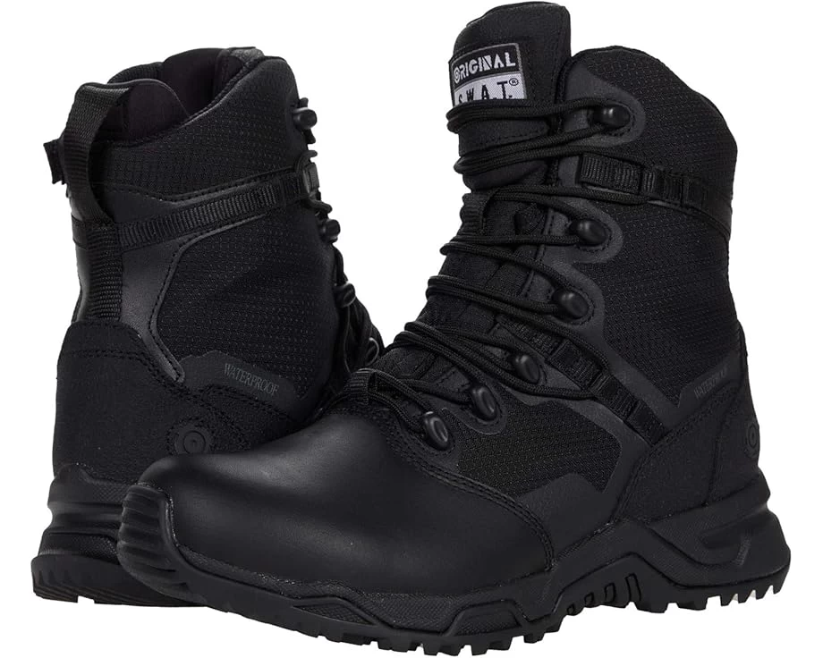 When agility matters, the Original S.W.A.T.® Alpha Fury 8″ Side Zip Leather Toe Waterproof is a high-performance lightweight boot built with the comfort and flexibility of an athletic shoe combined combined with all-day, hardworking tactical footwear reliability and stability.SKU: #9566686Style #: 176601.Quick drying air mesh fabric with flexible no stitch construction.Waterproof full membrane is pathogen resistant.Soft toe construction.Gusseted tongue keeps dirt and debris out.Custom-molded thermoplastic heel counter and toe box provide comfort and protection.Advanced UFit round lace system ensures the foot is properly positioned with optimal ankle support.Slip and oil-resistant rubber, non-marking outsole- meets exceeds ASTM F2913-19 for slip resistance and EN ISO 20347: 2012 standard for occupational footwear with full oil resistance and SRA rated slip resistance.