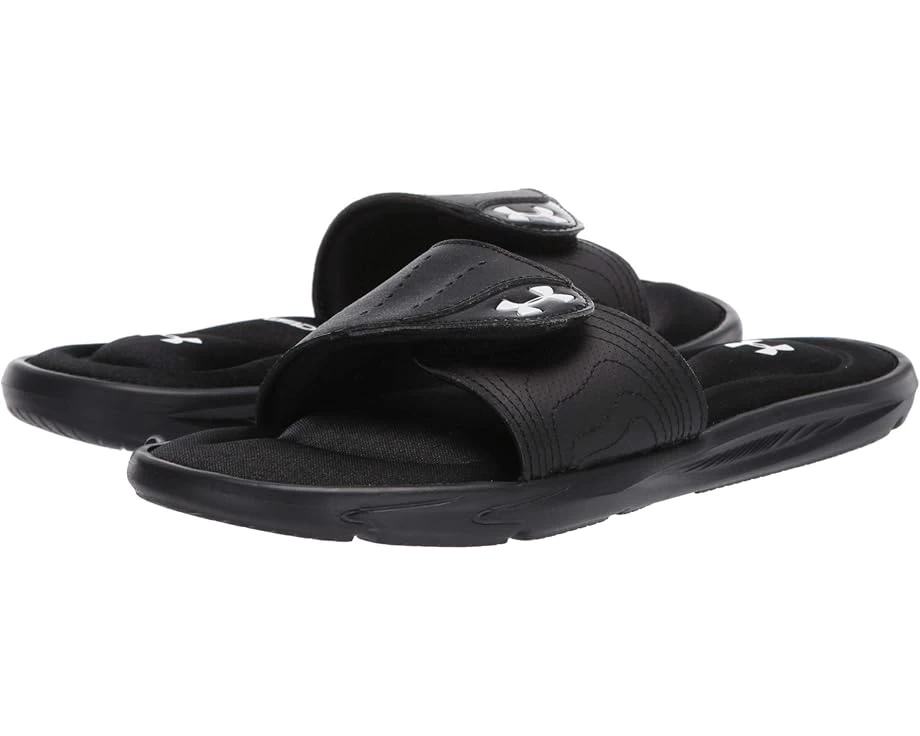 Take it easy after a long day at work or at the gym with the Under Armour® UA Ignite IX SL slide sandal. SKU: #9322713Adjustable hook-and-loop synthetic strap.HeatGear® fabric lining. Footbed features two layers of Performance® 4D Foam for lasting underfoot comfort. Anatomically contoured footbed. Re-engineered EVA outsole features durable traction pods in the heel that provide lightweight cushioning and comfort. Imported. Product measurements were taken using size 6, width B – Medium. Please note that measurements may vary by size.Measurements: