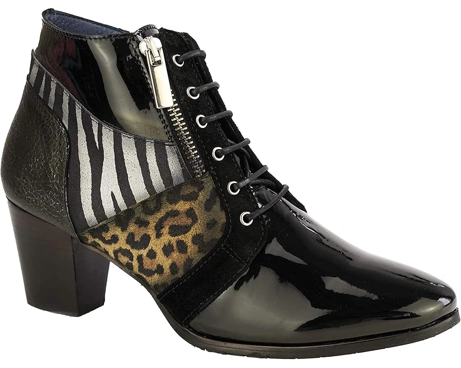 Take a walk on the wild side of life wearing the Unity in Diversity® Nile bootie featuring a leather upper with animal and metallic print. SKU: #9564801Lace-up and and side zip closure. Round-toe silhouette. Italian leather lining. Removable rebounding memory foam outsole. Texturized rubber outsole. Made in Portugal. Heel Height in inches: 3″