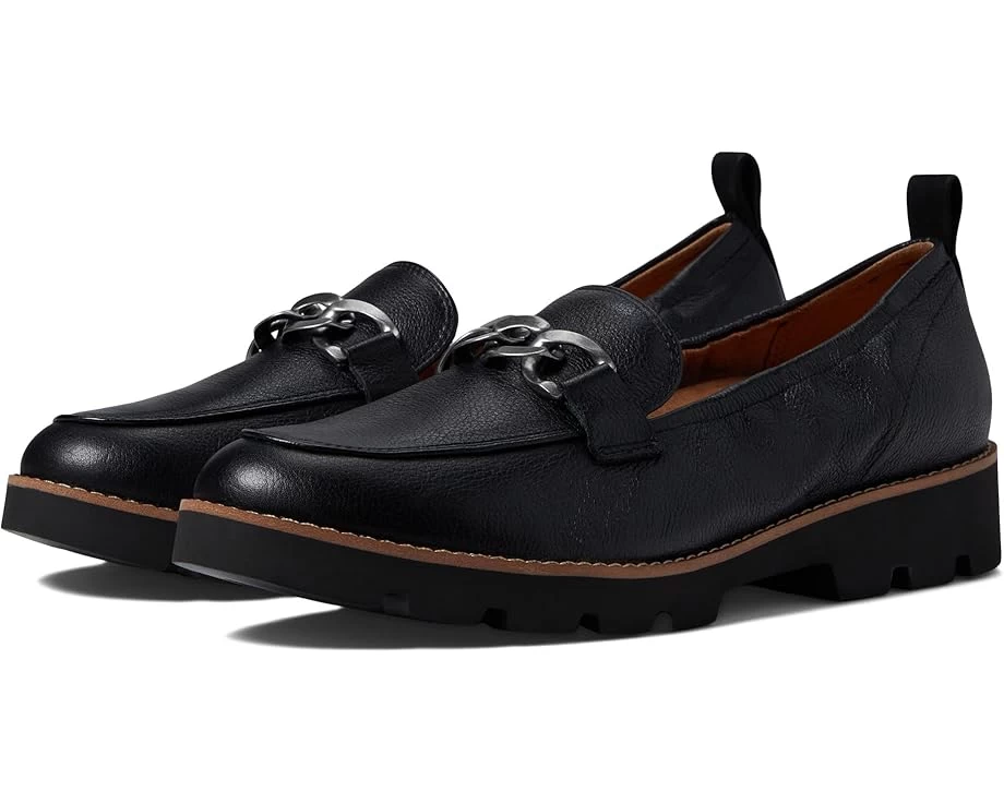 Make a style statement by wearing the stylish VIONIC® Cynthia Loafers. SKU: #9740203Leather upper. Textile lining and insole. Removable microfiber-covered EVA orthotic insert.Slip-on style. Classic moc toe. Pull loops for easy wear and removal. Chunky chain detail on the vamp. Received APMA Seal of Acceptance.Synthetic lugged outsole with added traction and durability. Imported. Product measurements were taken using size 9, width M. Please note that measurements may vary by size.Measurements: